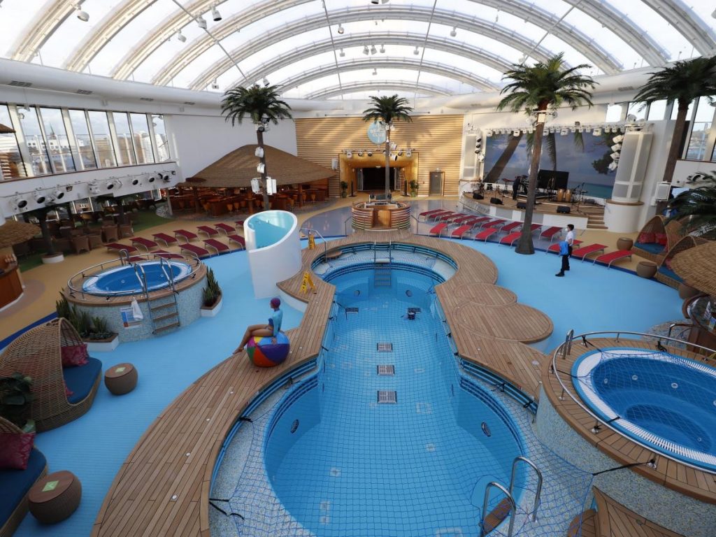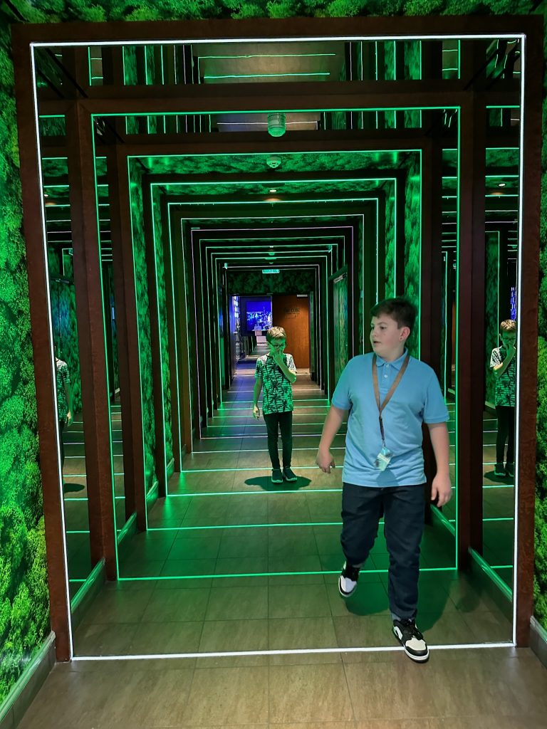 Es gibt viel zu erkunden vor allem für uns Kids. Zum ersten mal haben wir ein Indoor – Funpark in dieser Grösse auf einem Schiff erlebt. Es erstreckt sich über mehrere Decks mit einem Kletterpark, Rutschen, Reaktionsspielen und sogar ein Ninja-Parkour ist vorhanden. Für die Wasserraten unter euch gibt es an Bord den AIDA Racer. Es besteht aus insgesamt 3 Wasserrutschen. Dabei könnt ihr im Duell um die Wette rutschen. Natürlich sind auch Pools und Jacuzzis an Bord vorhanden. Ein Hauptpool im Beach Club sowie ein Infinity-Pool am Heck. Für die ganz Kleinen gibt es ein Wasserspielplatz mit einer mini Rutsche. Neu hat Aida eine Kooperation mit Europapark Rust. Ihr könnt an Bord die Virtual Reality Welt von YULLBE betreten. Der Spass ist allerdings gegen Gebühr. Für Teens bietet die AIDAcosma den WaveClub eine elternfreie Zone. Hier können sich Teenager zurückziehen und unter Gleichgesinnten die Zeit an Bord verbringen. Das neuste an Borde der AIDACosma ist die offene Gestaltung des Ocean Decks mit Panoramablick und die neue Boulderwand. Wie schon gesagt, langweiling wird es auf der Coma nicht!