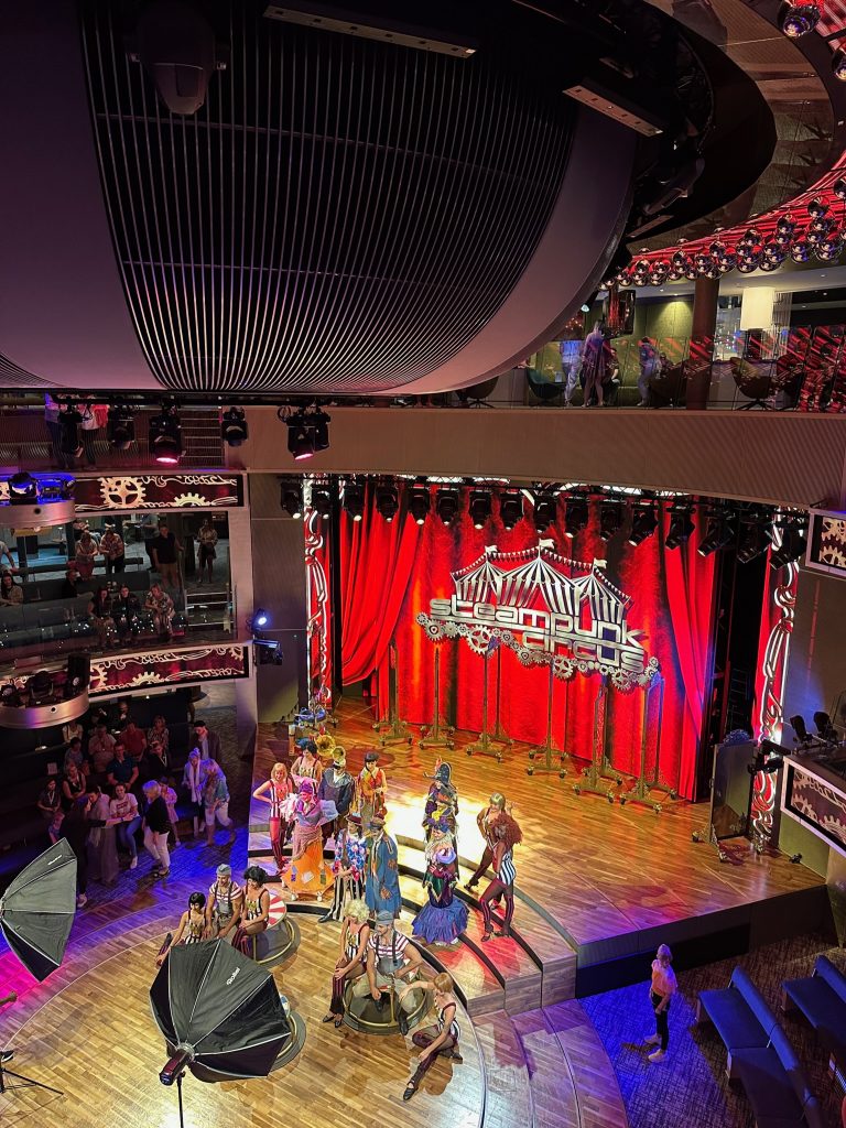 Wie sieht es mit der Gastronomie und Unterhaltung an Bord aus. Das Angebot an Restaurants Bars und Buffets ist sehr gut. Auch für den kleinen Hunger gibt es z.B. die Scharfe Ecke mit Curry Wurst oder Döner. Restaurants mit Bedienung müssen im Voraus reserviert werden. Die Buffets sind während der Öffnungszeiten für alle zugänglich. Hier ist schon mal der erste Unterschied im Service. Die Service Crew in bedienten Restaurants war sehr freundlich und hatte immer gute Laune. Die Crew der Buffet-Restaurants dagegen war demotiviert, langsam und wirkte abgestumpft. Das selbe verhalten hatten wir auch an den Bars erlebt. Die Wartezeiten für bestellte Getränke betrugen mindestes 15 Minuten. Liebe AIDA Crew das geht definitiv besser 😉