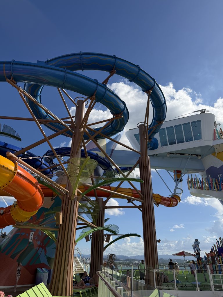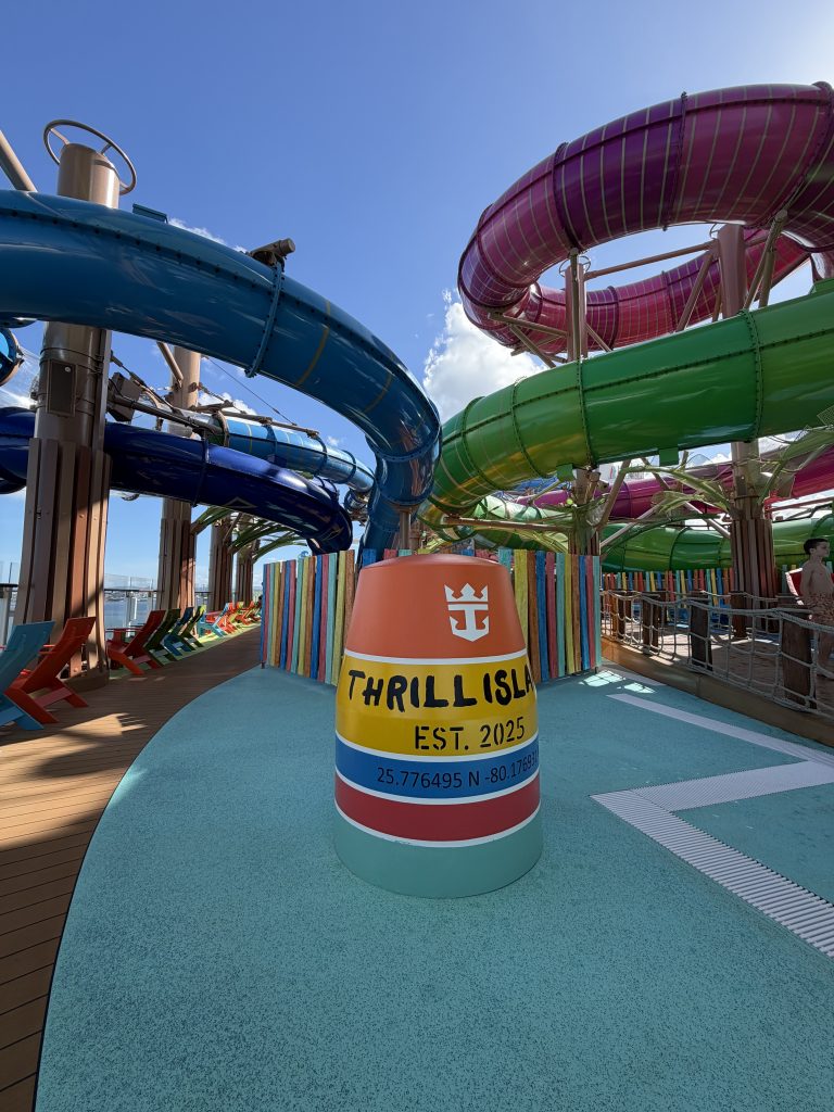 Thrill Island Dies ist der Ort für alle, die das Abenteuer suchen. Das absolute Highlight ist Category 6, der größte Wasserpark auf See mit sechs Rekord-Rutschen. Hier geht es um Geschwindigkeit, Mutproben und Nervenkitzel pur.